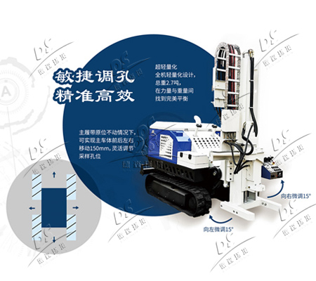 该采样机的优势有:1、整机轻量化设计、结构紧凑、灵活调孔;发动机采用原装日本进口久保田品牌;2、恒定液压系统、动力十足、快插式液压接头、工作装置拆卸方便、易于维修保养;独家70P钻头、专业微波打击技术、大功率冲击动力、提升采样效率;3、整机实现远距离无线遥控控制,可在空间狭小、地质松散的复杂地域作业,方便现场作业;4、采用三角形行走履带装置,在污染场地通过性更强。