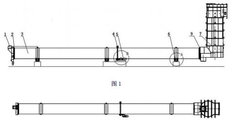所述筒体由钢板卷制并焊接构成,筒体端口处设置有冷却风机。矩形轮带与筒体表面之间设置有浮动垫板。支承装置为调心式滑动轴承结构,并且在支承装置上设置有润滑油自动加热装置以及相应的温控装置和测量装置。大齿圈两侧设置有挡轮装置,所述挡轮装置包括机械挡轮和液压挡轮中的任一种。尾部密封装置为QD型密封装置,尾部密封装置采用气缸压紧端面接触式,通过电动干油泵将润滑脂注入摩擦圈接触面进行润滑。